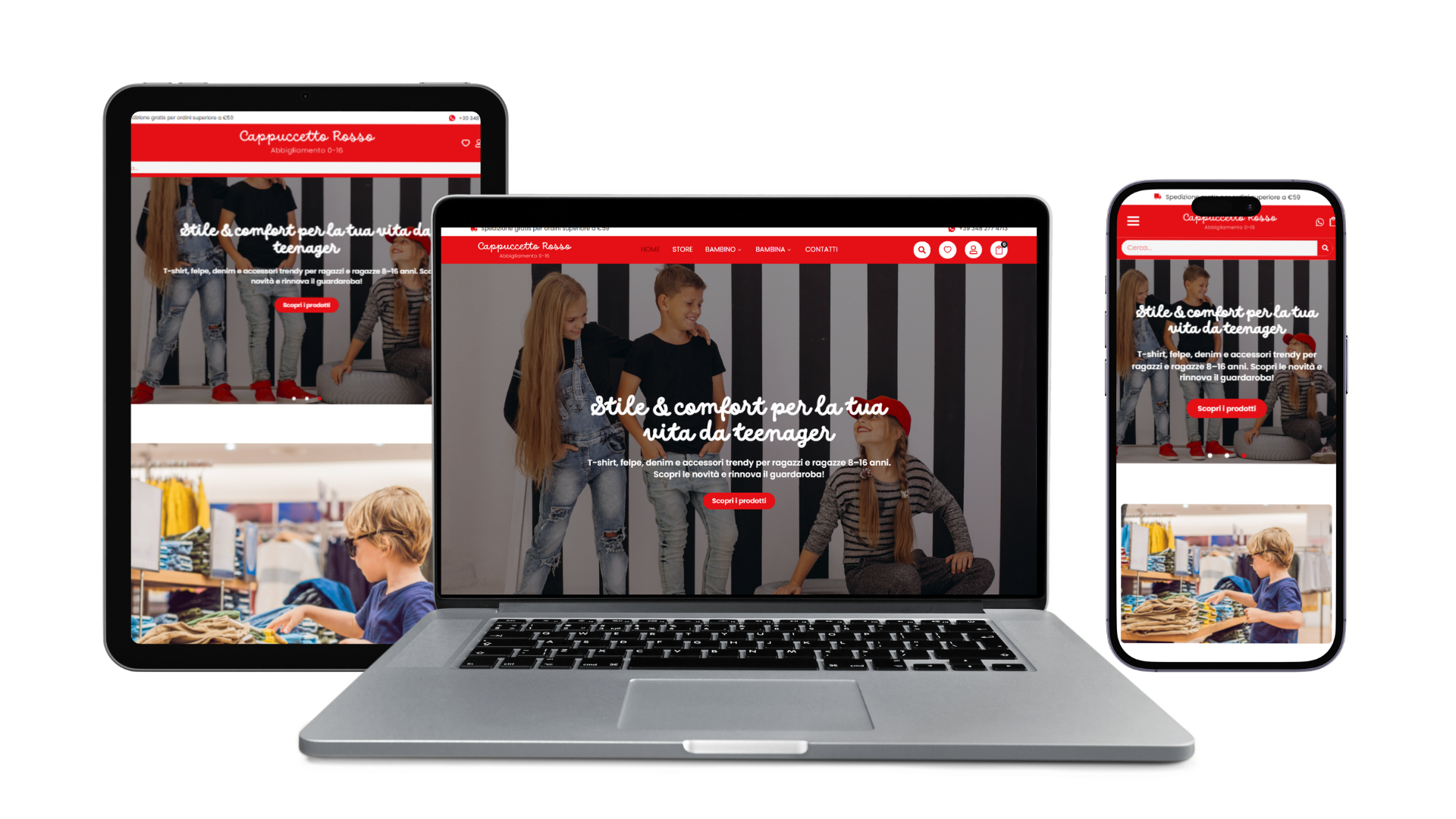 We designed cappuccettorosso016.it, creating a bridge between fairy tales and the modernity of fashion retail.