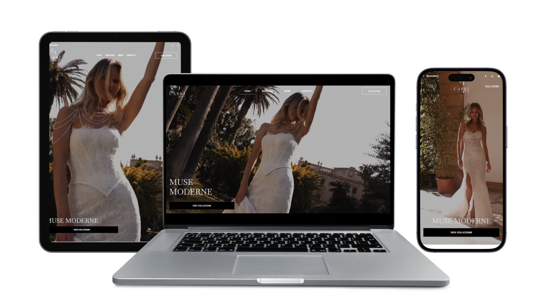 Capri Sposa is an elite atelier dedicated exclusively to the bride. In a market where specialization is synonymous with quality, the goal was to create a platform that reflected the exclusivity and magic of choosing the most important dress. Our agency has developed a solution that combines a high-fashion aesthetic with a strategy of constant visibility, transforming the site into a must-see destination for every bride-to-be.