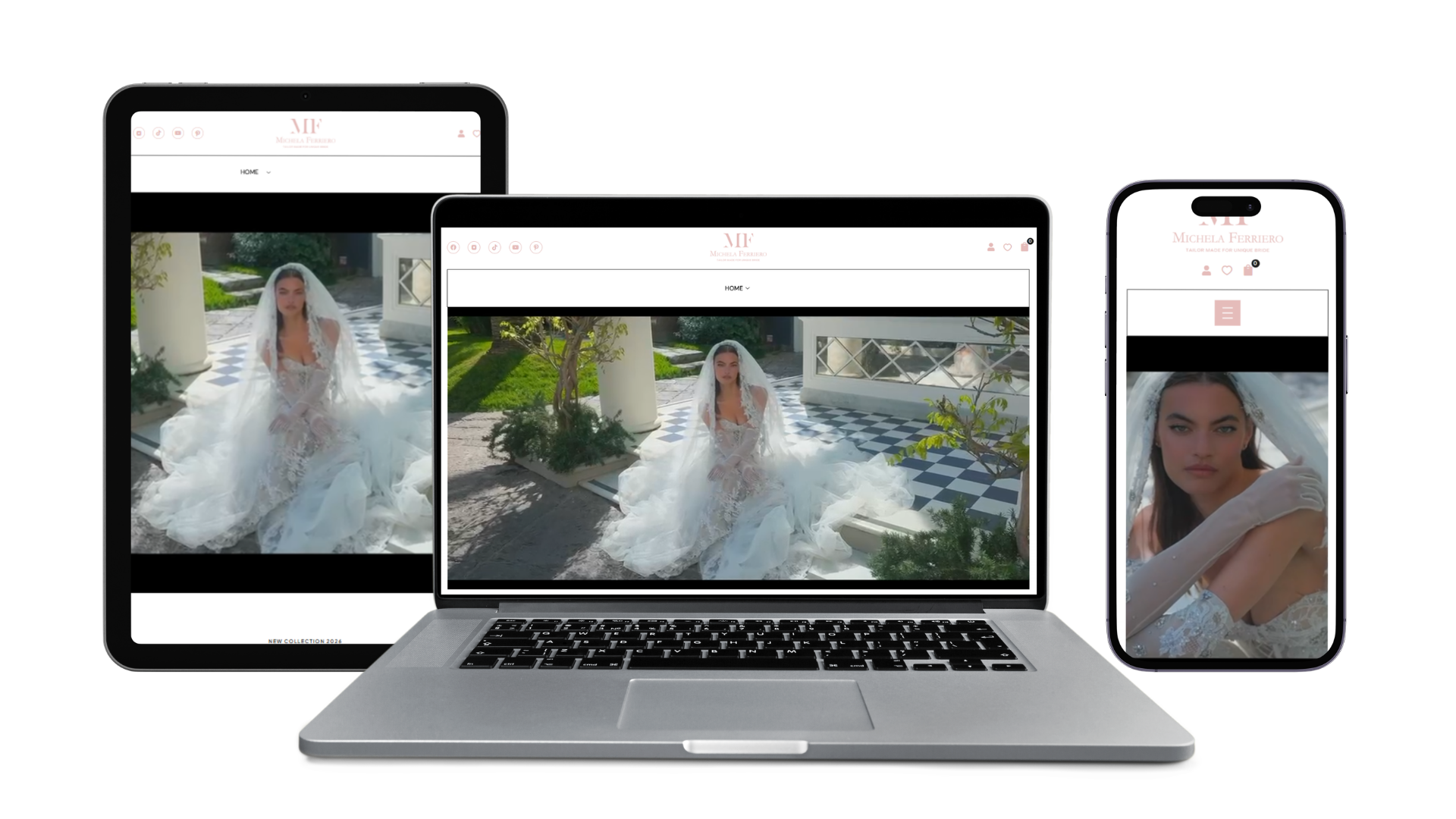 Michela Ferriero è un brand sinonimo di lusso, innovazione e artigianalità sartoriale nel settore bridal. La nostra sfida è stata quella di proiettare l’immagine ricercata e sofisticata della Maison su una piattaforma web che parlasse un linguaggio internazionale, capace di affascinare sia le future spose che i buyer dei più prestigiosi showroom mondiali.